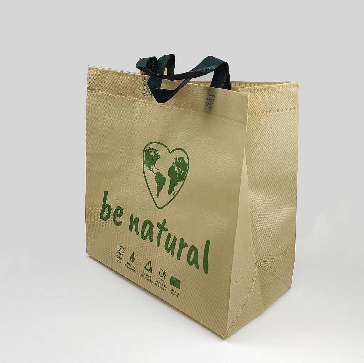 Be Natural PP nem szőtt anyagú, erős, többször használható bevásárlótáska, környezetbarát és mosható.