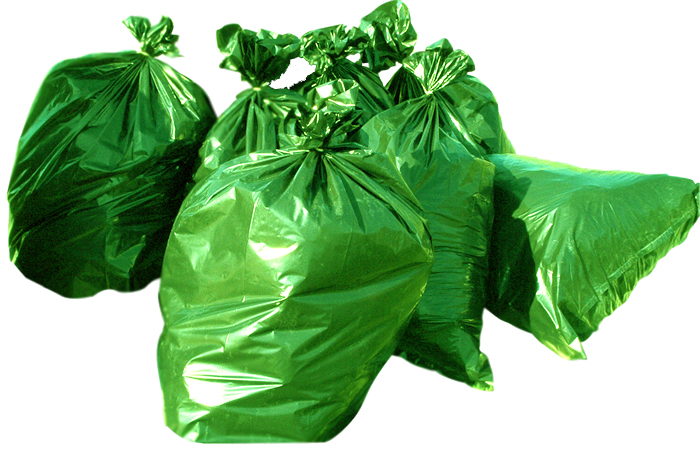 Polietilén zsák rolnizva. Környezetbarát, mert újrahasznosított anyagot tartalmaz. Zöld színű