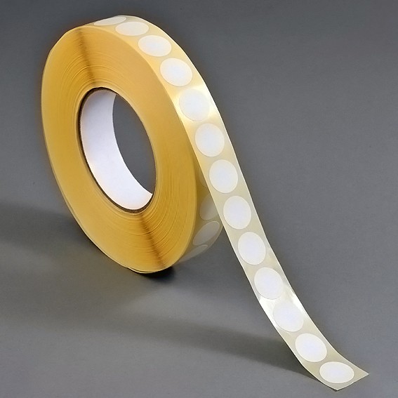 Lezáró korong, körcímke (fehér), ragasztópötty, tekercses. 30 mm