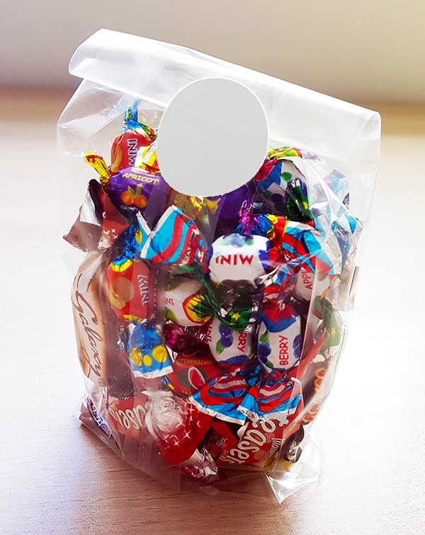 Papírból készült öntapadós korong a tasakok, zacskók gyors, esztétikus, figyelemfelkeltő lezárásása.