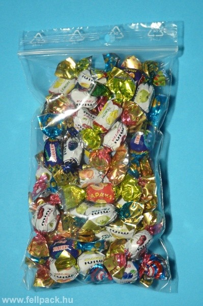 Önzáró simítózáras tasak akasztólyukkal. A hagyományosnál 25%-kal vastagabb anyagból van.