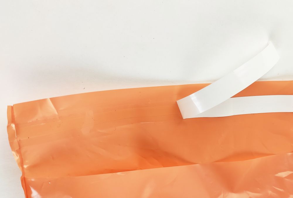 Narancs színű, lezárható tasak olyan termékek postázására, elküldésére, amelyet ütődéstől nem kell védeni (pl. ruhanemű, dobozolt termékek).