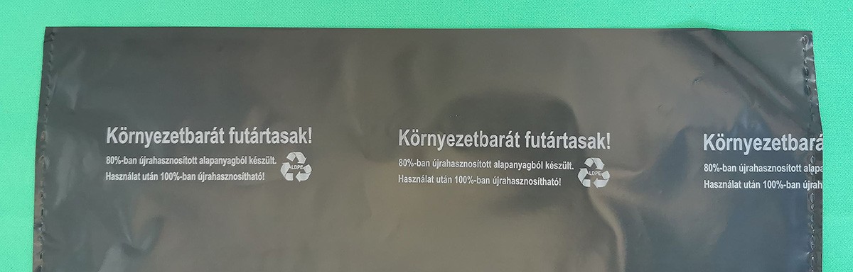Futártasak, postai csomagoló tasak. A környezet védelme érdekében újrahasznosított anyagból készült.