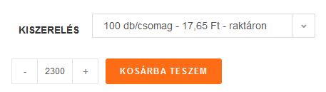 Ha pl. 2300 db-ot vásárolna, és ezt a 100 db/csomag kiszerelést választva teszi a kosárba, a rendszer nem számol a mennyiségi kedvezménnyel.