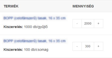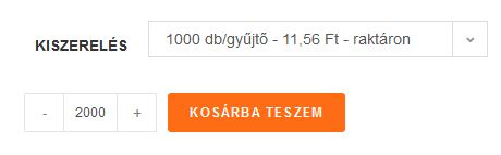 A legtöbb termék adatlapján látni fog egy Kiszerelés mezőt, ahol tud választani kisebb, és nagyobb (kedvezményes) csomagolási egység között. Pl: 100 db a kisebb kiszerelés, de választhat 1000 db-os egységet is, aminek kedvezőbb az ára.